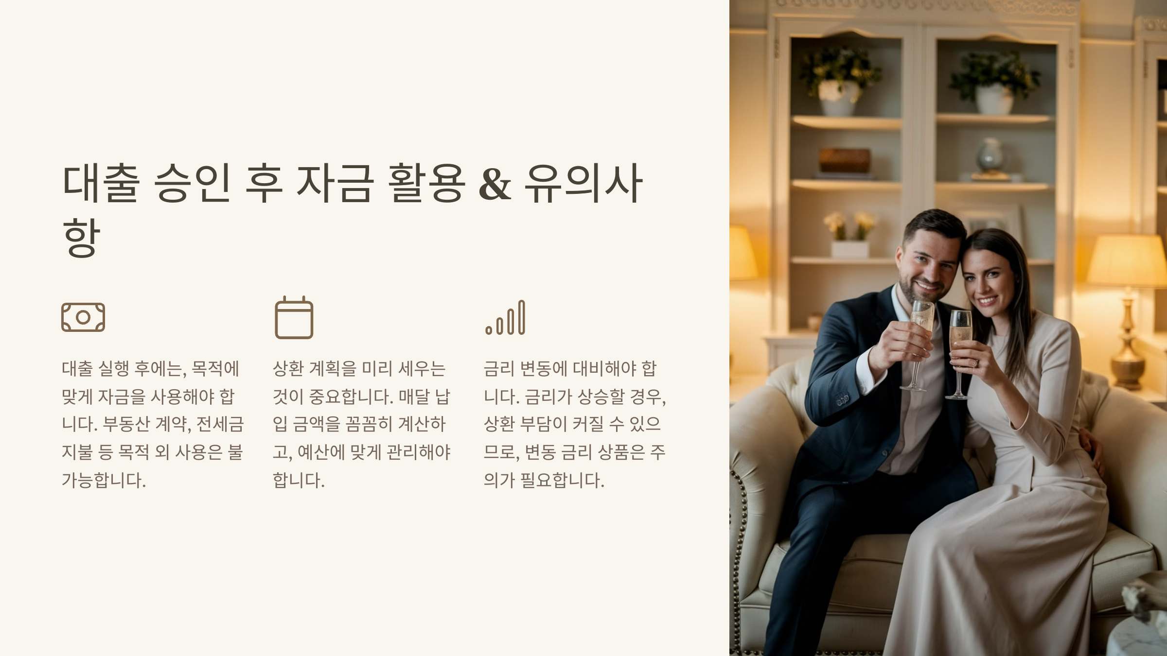 대출을 받은 후에는 자금 활용 계획을 세우고, 이자 부담을 줄이기 위한 전략이 필요합니다.